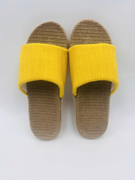 Bright Yellow Straw Slippers